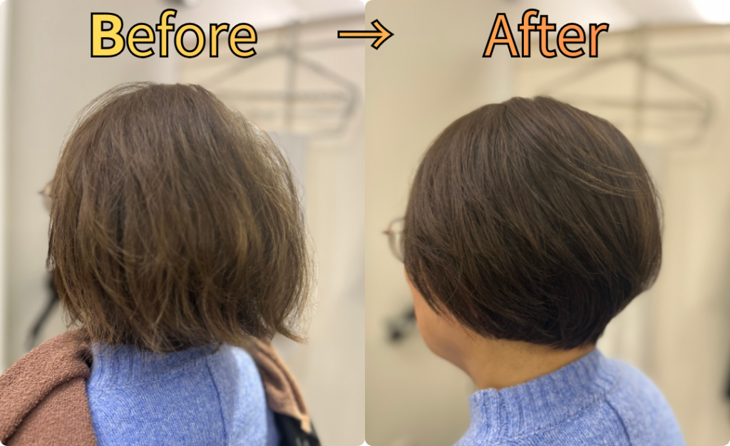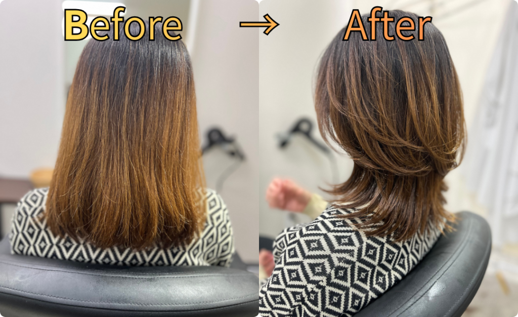 根元の量が多くて、毛先がスカスカ状態バランスが悪いスタイルになったりします